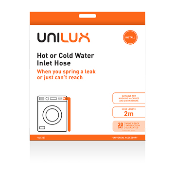 Universal 2m Hot or Cold Water Inlet Hose for Front Load and Top Load Washing Machines and Dishwashers provides the extra hose length you need when your hose doesn't reach or a perfect replacement to an old leaking hose. Suitable for most brands.